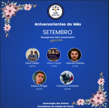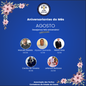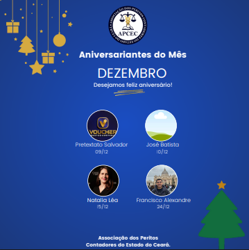 Esta é sua primeira gestão como presidente da APCEC, o contador Cleinilton Alves foi conduzido ao cargo para o triênio 2023/2025, bem como os novos Diretores. Diretor Financeiro Pretextato Salvador. Diretor de Desenvolvimento Profissional Francisco Marcelo Avelino Junior e Conselheiros deliberativo Jorge Martins, Paulo Roberto, Paolo Giuseppe e Clara Germana. Conselho Fiscal Robinson Passos, Alysson Leonardo e João Bosco, para o triênio 2023/2025.