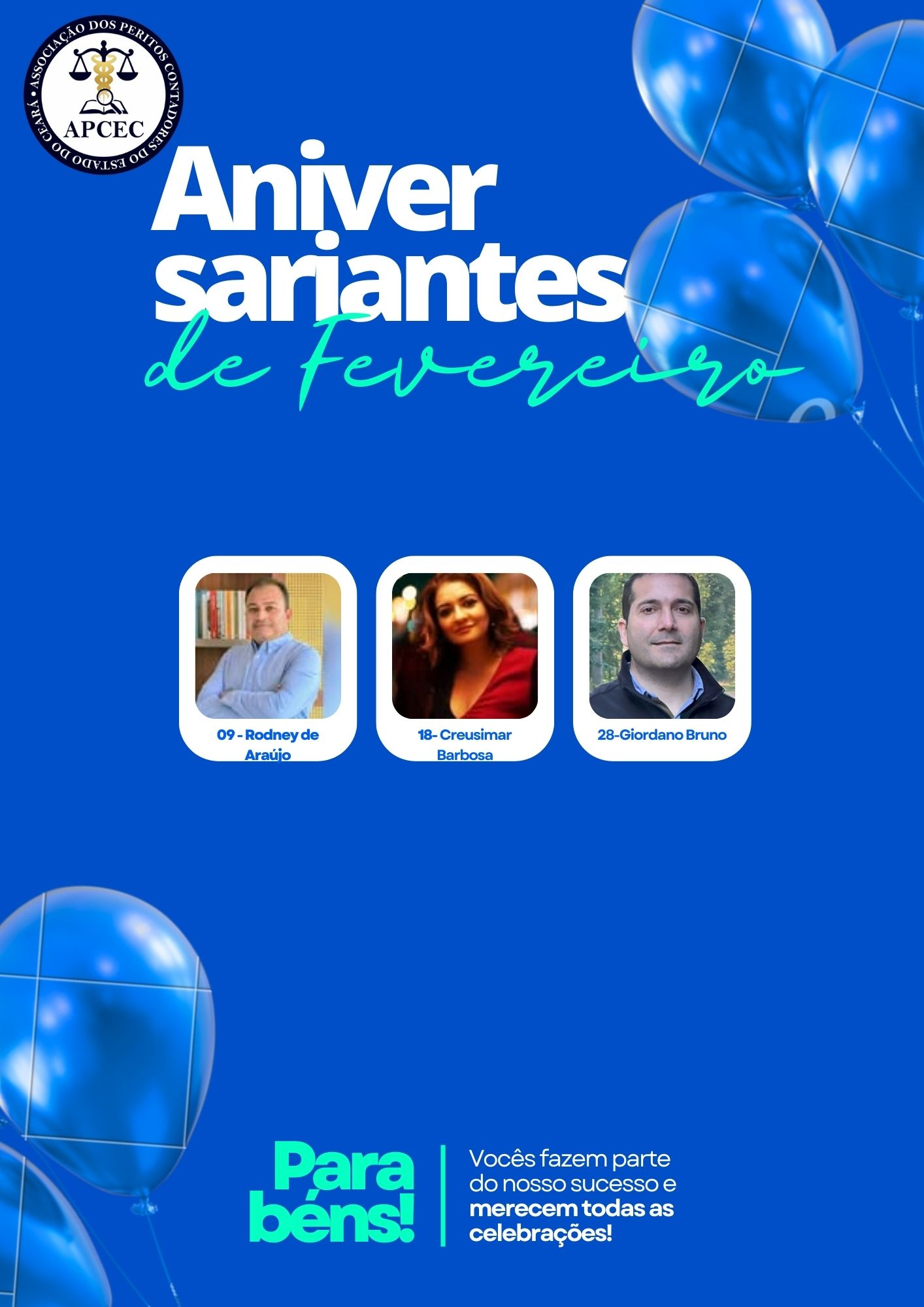 Parabeniza o Contador e Diretor da APCEC Dr. Marcelo Avelino e a associada Dra. Jacinta Rocha.